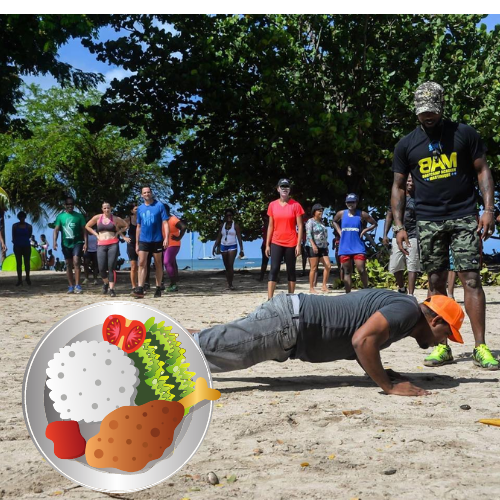 Beach BOOTCAMP avec repas Colombo de Poulet, riz , salades de fruits frais